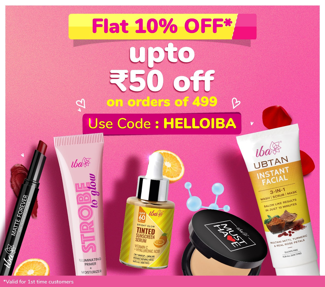 Prepaid Orders: Enjoy an extra ₹50 off on prepaid orders at Iba Cosmetics.