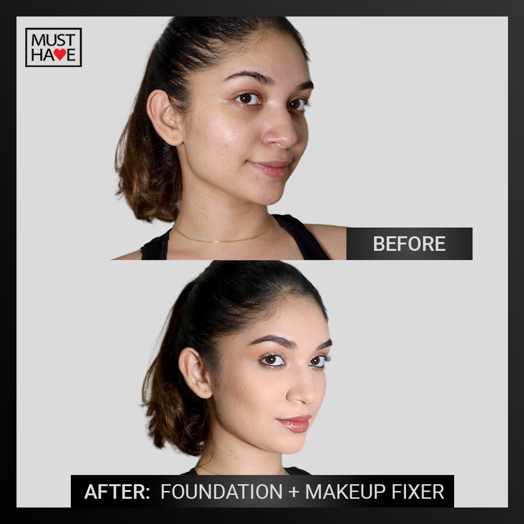 The spray is the perfect way to set your makeup look so that long hours, sweat, humidity and wear & tear do not have any effect and do not spoil the look. It creates a protective, waterproof layer onto the makeup and also helps to lock in the moisture within the skin.