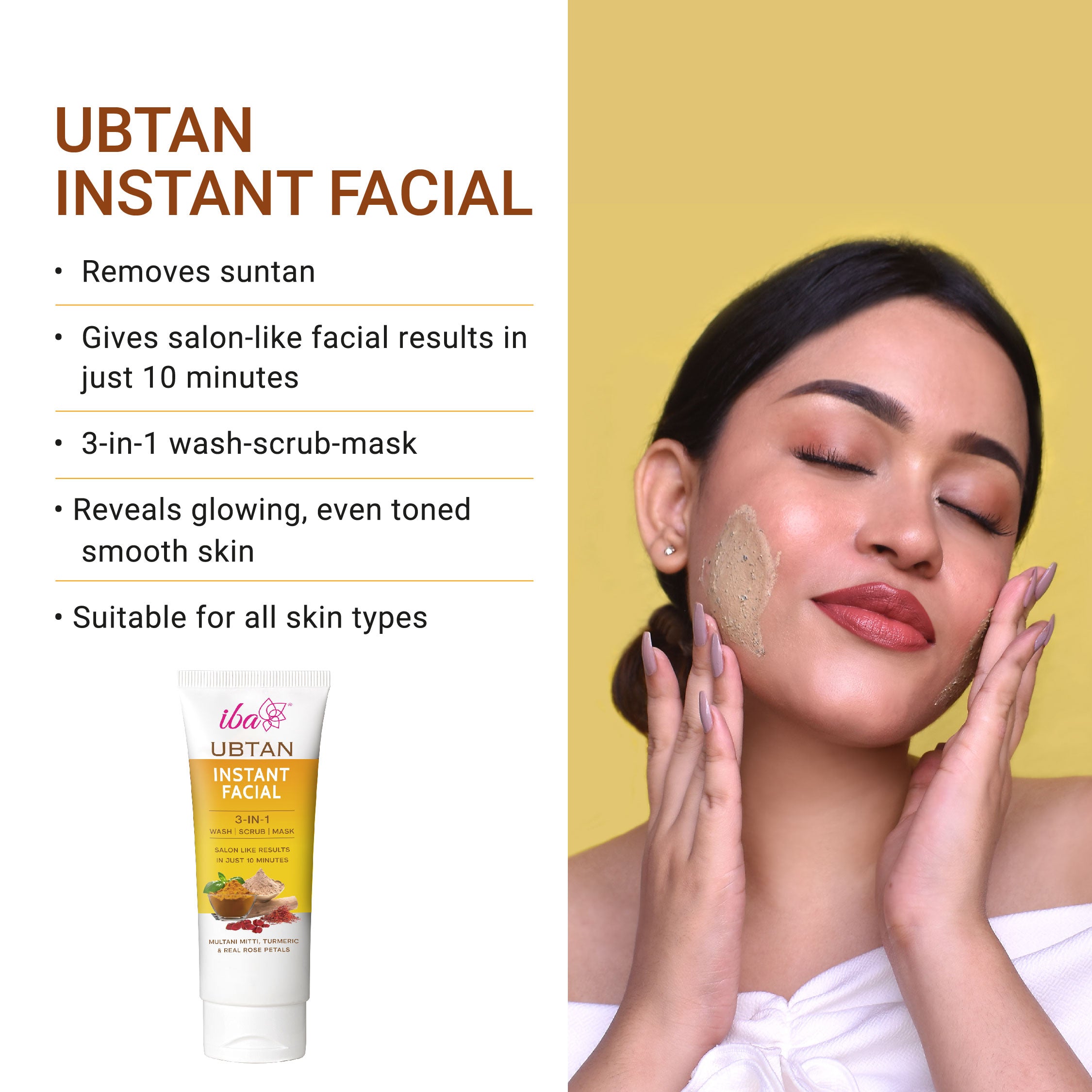 Iba Ubtan Instant Facial is a 3-in-1 wash, scrub and mask to give salon like facial result in just one easy step!!!