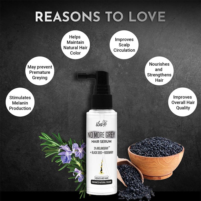 Iba Anti- Grey Hair Serum containing naturally derived active ingredient-MelanoGray™-which is proven to reduce the grey hair ratio by 21.6%. Along with Blackseed & Rosemary ...